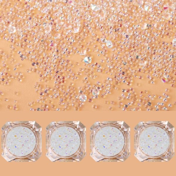 - Product Description: Mix 0.8 mm caviar beads and 1.2 mm diamond-shaped micro rhinestones, 6g/bottle.