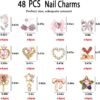 48PCS Nail Charms, Nail Rhinestones Kit with Nail Gems, 3D Nail Charms and Gems Charms for Nails, Nail Art Accessories Rhinestones