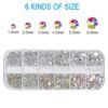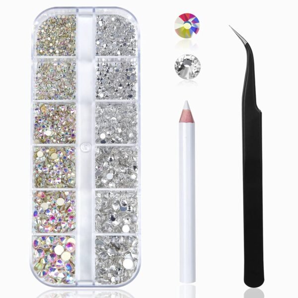 - 【Package Includes】: 1 box of crystals of AB color crystal and transparent color in the quantity of about 2400 pcs; 6 sizes 1.5mm, 2.0mm, 2.7mm, 3.2mm, 3.8mm, 4.8mm; 1 piece of Wax Pencil and 1 elbow tweezer are also included