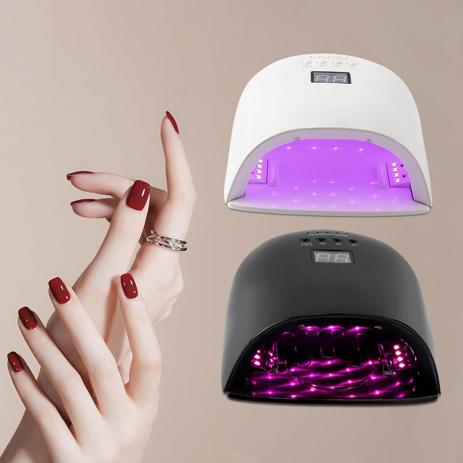 - 【Timable】 The nail lamp comes with four timer times (10,30s, 60s, 99s) that you can set depending on the type of nail gel to avoid long baking of nails and effectively prevent your hands from turning black. And you can clearly see the countdown through the LCD screen.