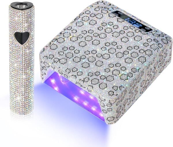 - 【Rechargeable 39 Beads Quick Drying Curing】The sparkly nail lamp is the ultimate solution for optimal nail care. Equipped with 39 dual light source lamp beads, this UV light swiftly cures all types of nail gel s, including Base Coat, Top Coat, Color Gel, Hard Gels, Poly Gels, Builder, Acrylic, Sculpture gel, and gem glue. Say farewell to harsh lights that can harm your eyes and hands .You can indulge in top-notch salon manicures from the comfort of your own home